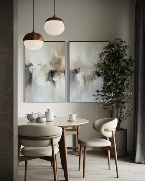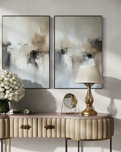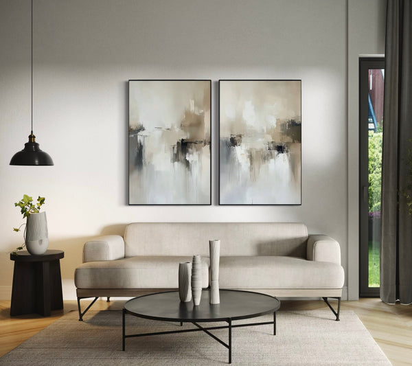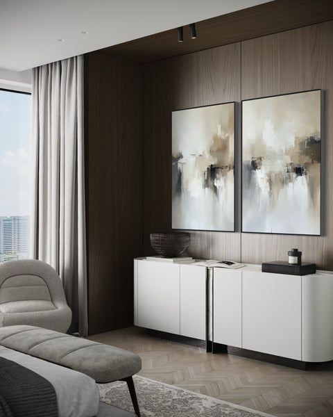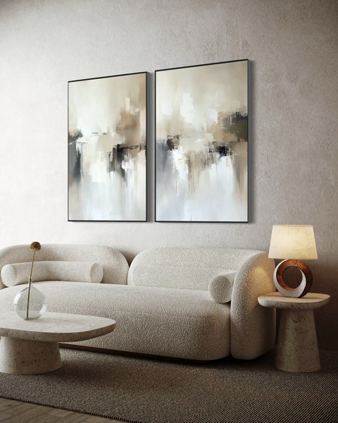 Set Cuadros Decorativos Abstracto Negro Arena 2 - 201 - Diptico Minimalista Estilo Nordico en Tonos Neutros