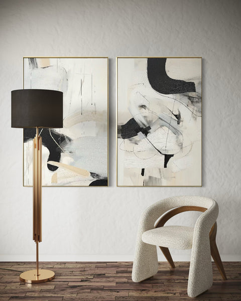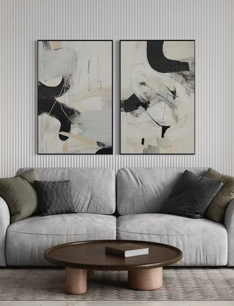 Set Cuadros Decorativos Abstracto Negro Arena 2 - 221 - Diptico Moderno Arte Minimalista Estilo Nordico Tonos Neutros
