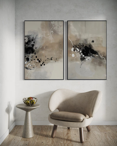 Set Cuadros Decorativos Abstracto Negro Arena 2-236 - Diptico Moderno Estilo Nordico en Tonos Nutros