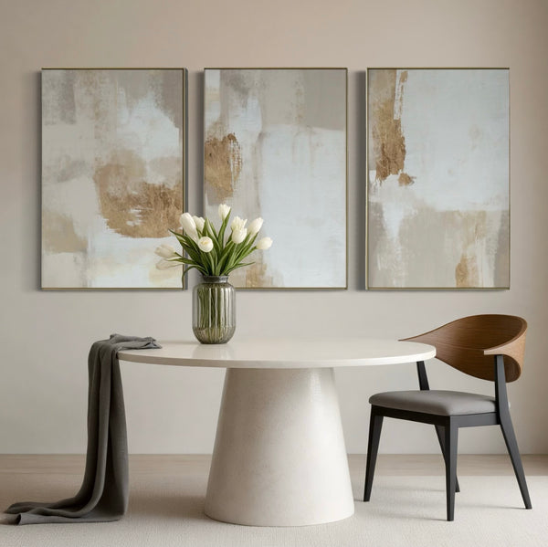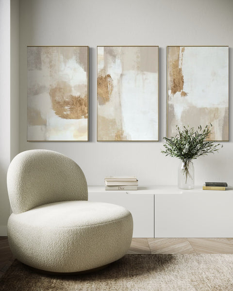 Set Cuadros Decorativos Abstracto Negro Arena 2 - 279 - Triptico Moderno y Elegante Arte Estilo Boho en Blanco, Beige y Dorado Oro